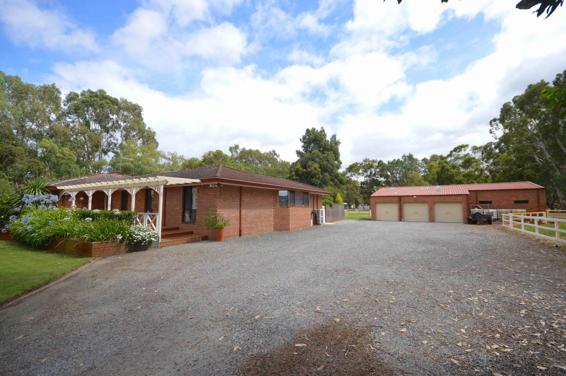 To the rear, a beautiful outdoor entertaining area will suit any occasion and overlooks the shimmering below-ground fibreglass swimming pool. The budding tradesman will be delighted at the prospect of a huge powered 6m x 9m three car garage and an additional 15m x 8.1m stables/shed or storage for your boat/caravan.