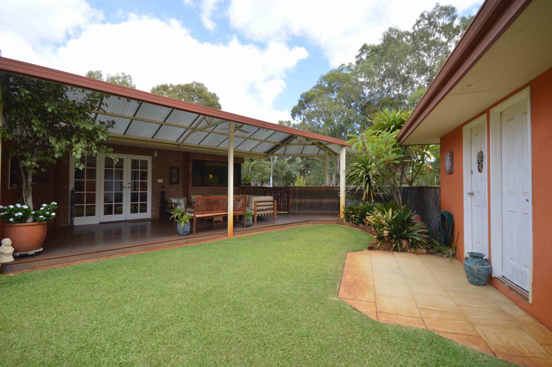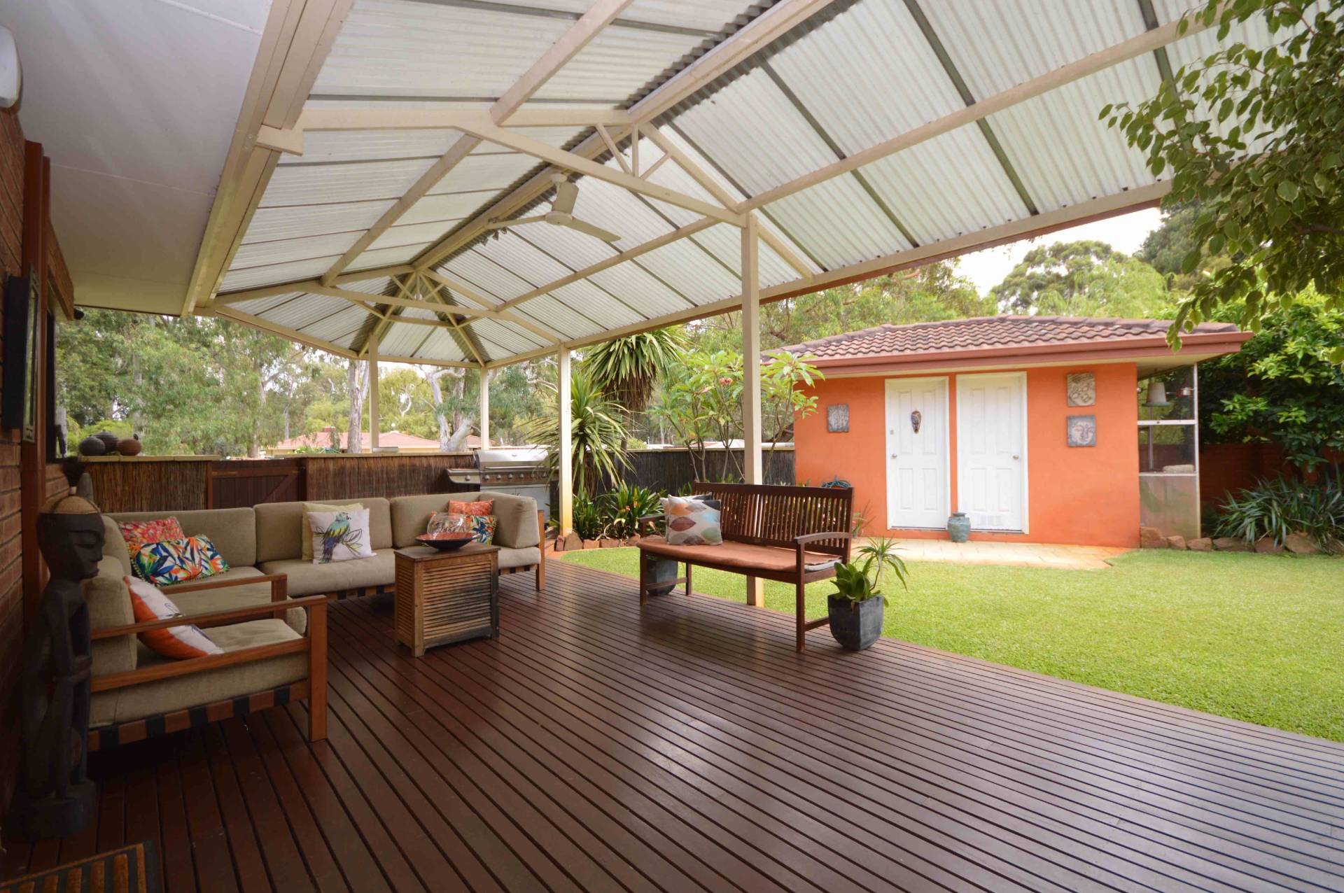 * Feature patio/vaulted entertaining area, timber decking