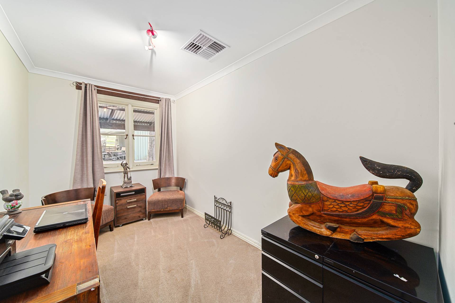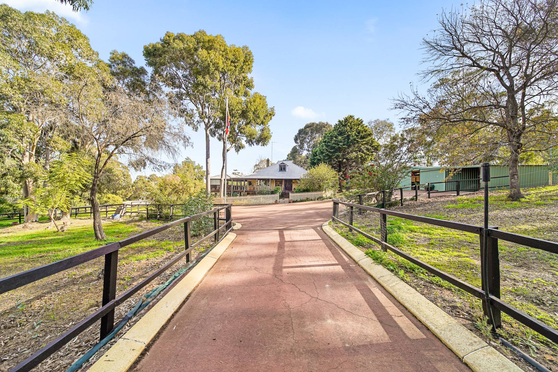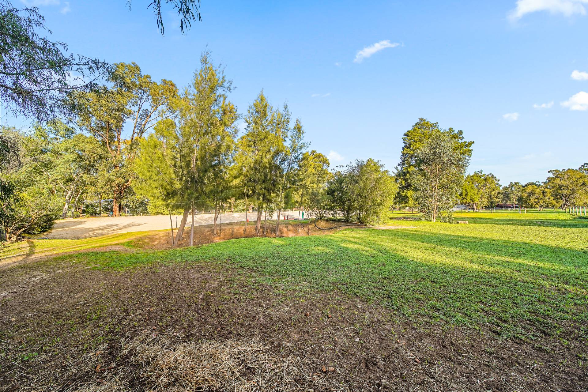 • 20 x 60 river sand, well-draining arena, with reticulation • Five well fenced and reticulated paddocks • Long sweeping bitumen driveway • Bore, two pumps and holding tank • Scheme water
