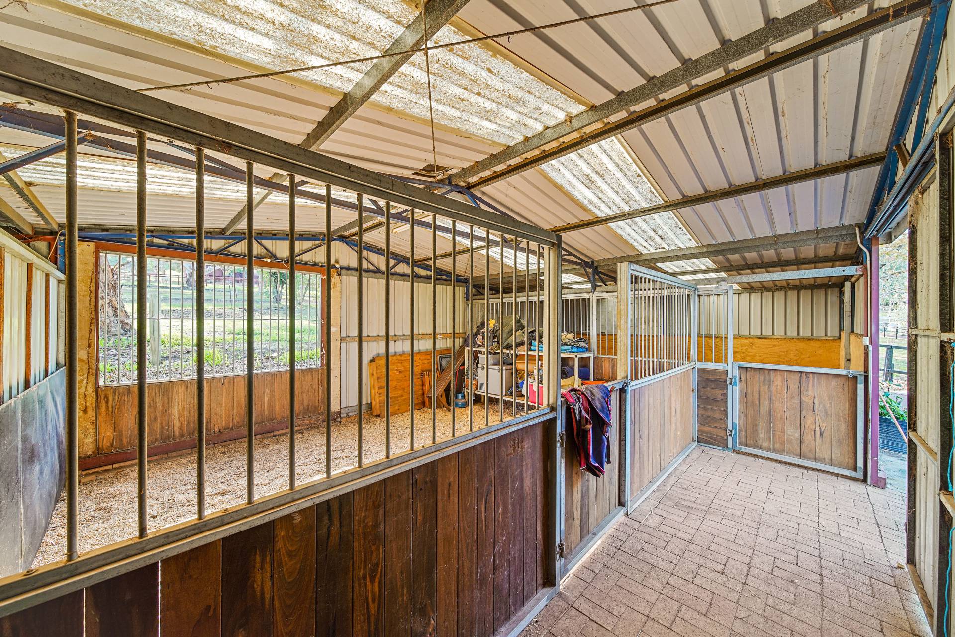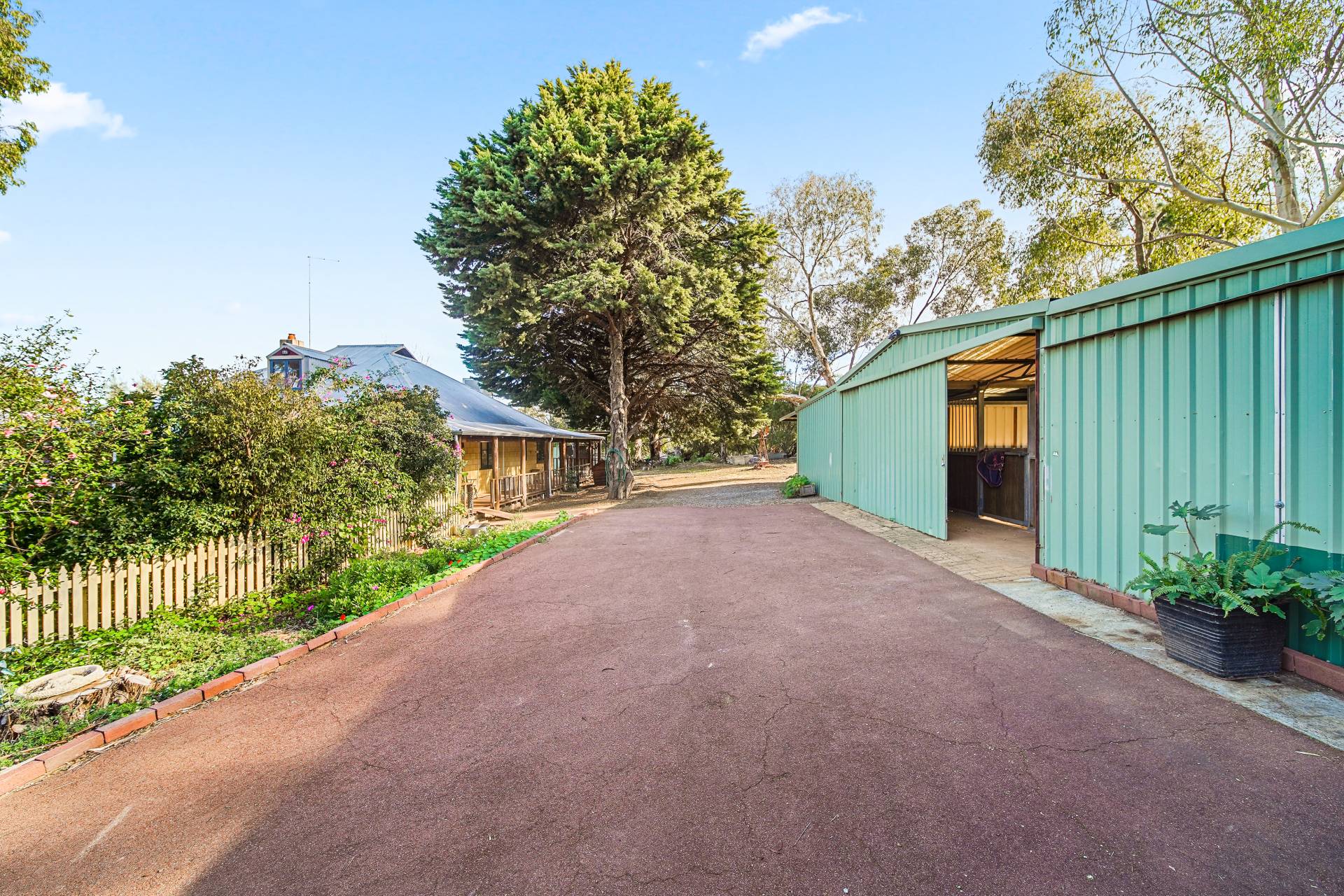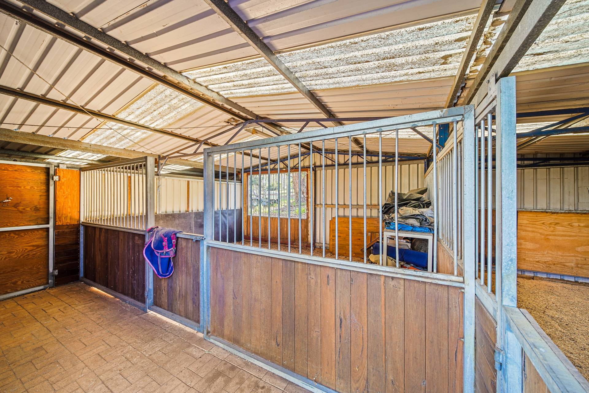 The horse facilities should you require them include a full sized, reticulated, riversand arena 20 x 60mtrs, two extra-large, portable stables, located in the powered and lit shed, plus two washdown bays.