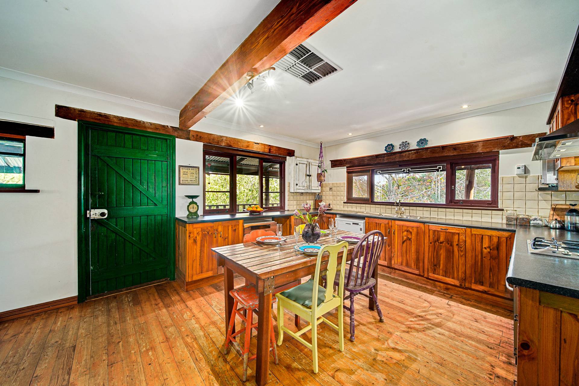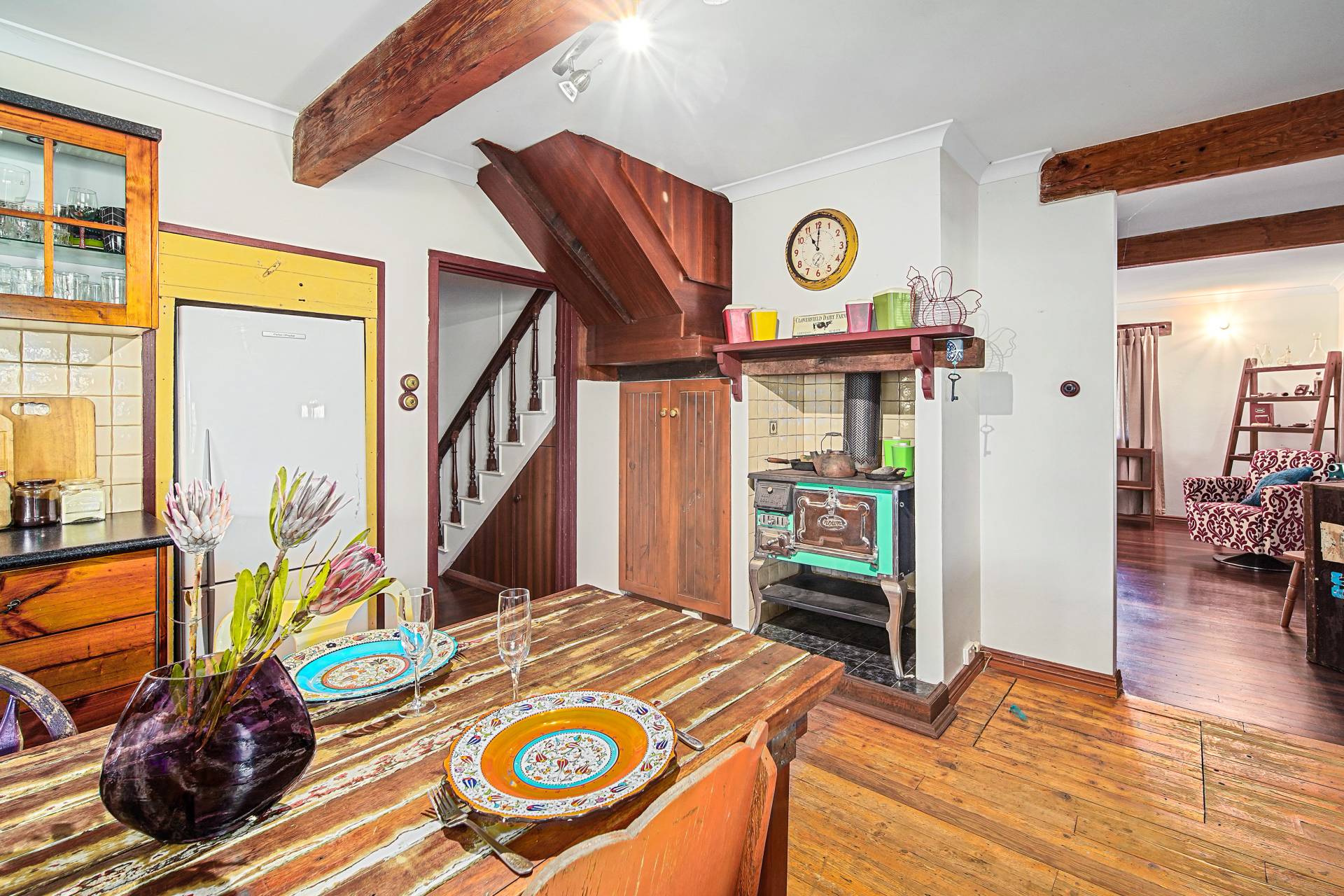 • Character wood fired stove, great for slow cooking in the winter • Large Country Kitchen with Stainless steel appliances.