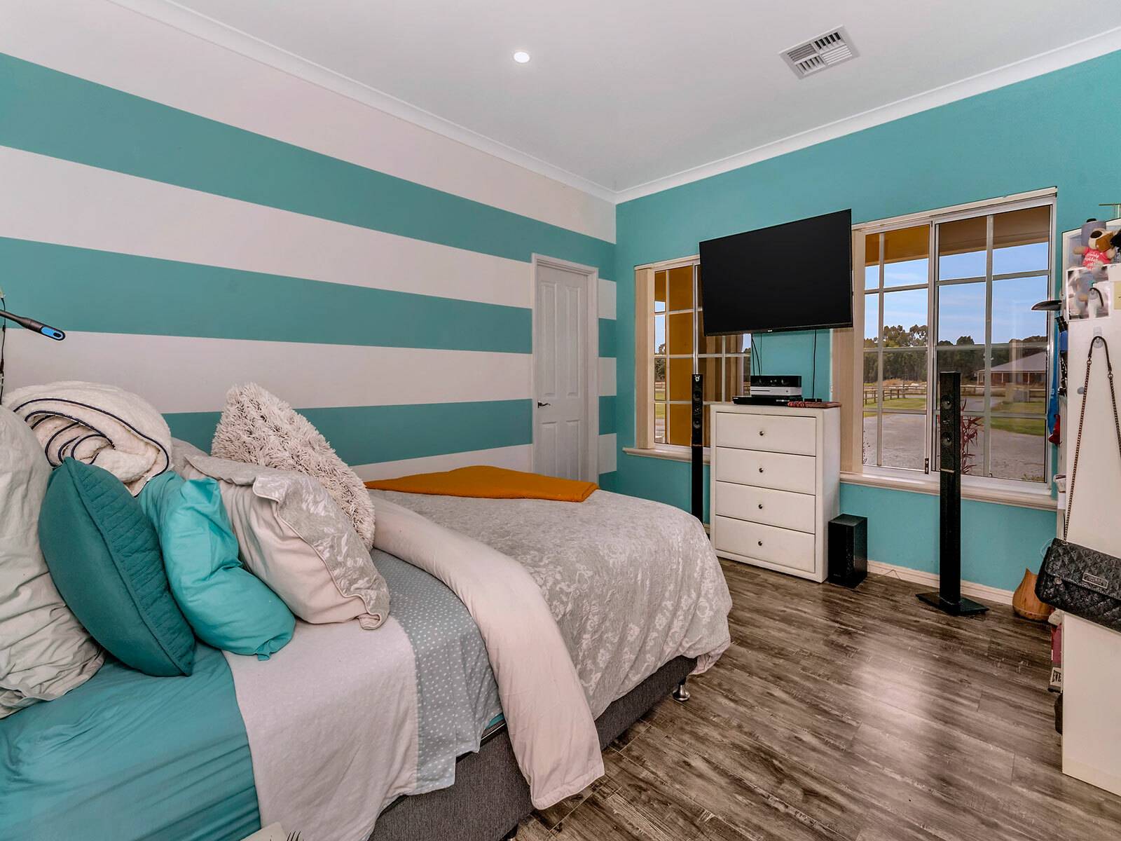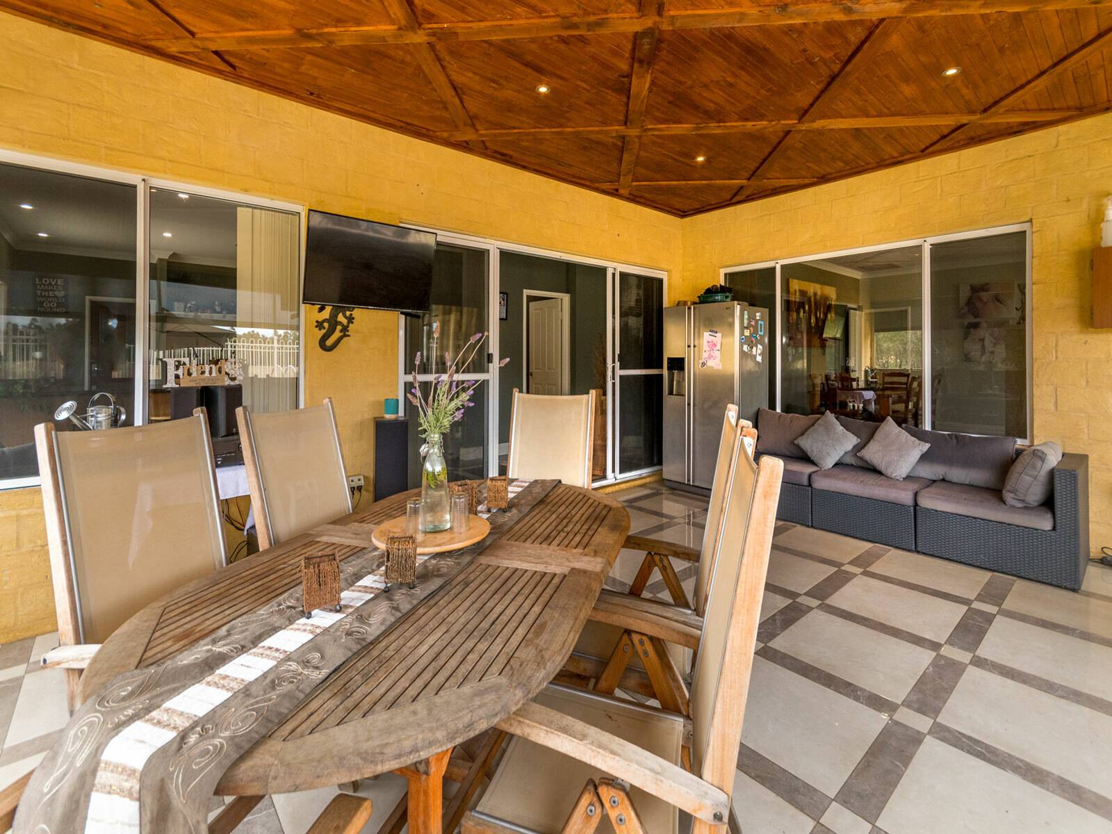 Main dwelling Boasting well over 315sqm of internal living areas it offers a comfortable and versatile layout with 4 Bedrooms, 2 Bathrooms, Massive country kitchen with granite tops, with multiple living areas, High ceilings and centre piece fireplace, double sided, beautiful hexagon theatre situated in the centre of the house. Perfectly suited to the extended family the layout lends itself to lots of kids, with big bedrooms, big family home and Study and with superb views over the farm.