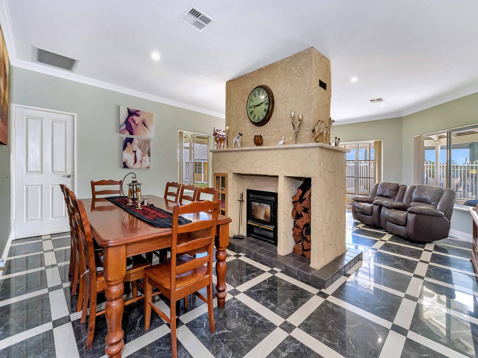 ·       Central double-sided log fireplace.