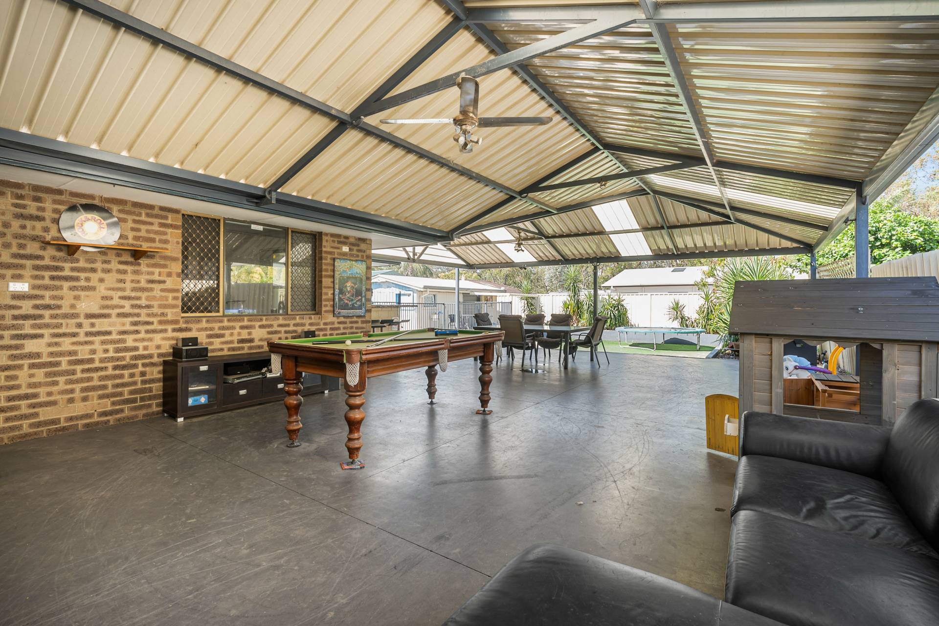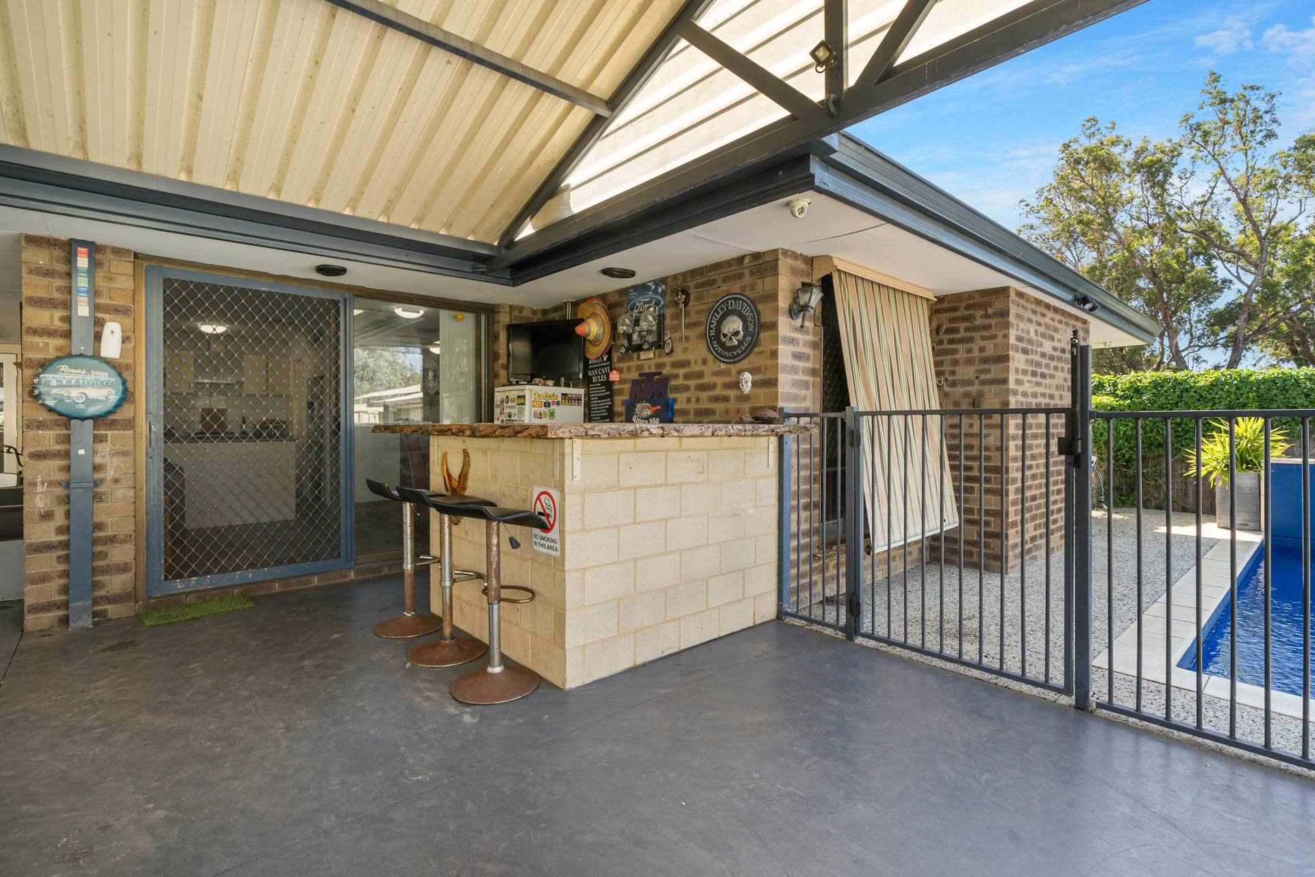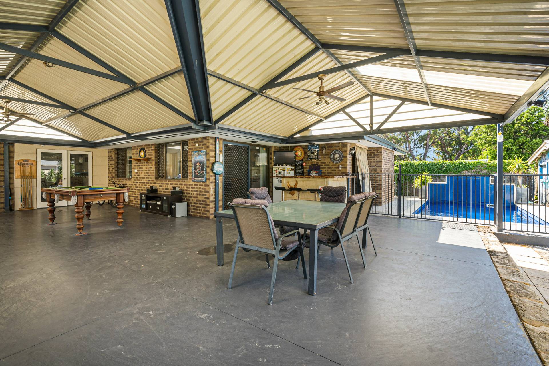 The home is set on 695sqm and ready for summer so let’s talk about the outdoor living…boasting a massive gabled entertaining area which has dual usage, there is an area for secure parking and an area for entertaining which overlooks the sparkling below ground pool and powered workshop. For the kids you have a sunken low maintenance yard with established gardens and a brilliant bar area for mum and dad to sit back and enjoy a coldie after a hard day’s work. There is also another gabled patio/carport to the front of the home which caters for multiple parking and having an extensive concrete driveway there’s plenty of room for a caravan or the tradie with a utility or trailer.