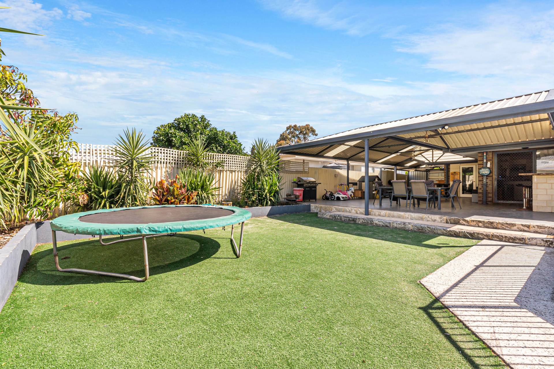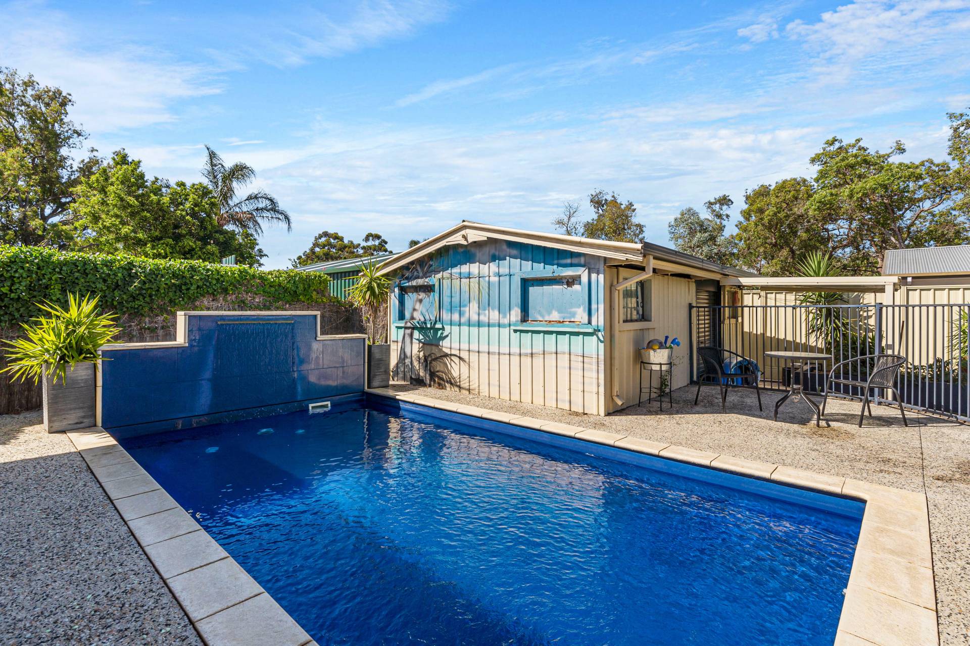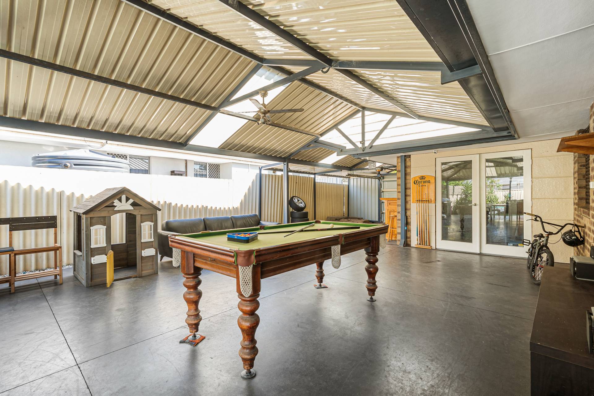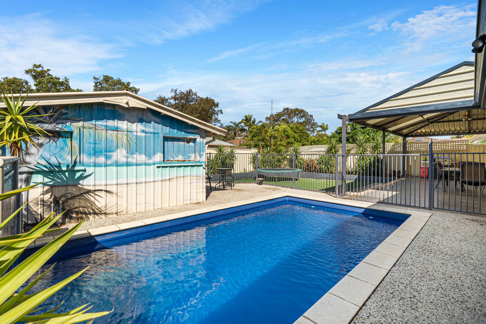 The home is set on 695sqm and ready for summer so let’s talk about the outdoor living…boasting a massive gabled entertaining area which has dual usage, there is an area for secure parking and an area for entertaining which overlooks the sparkling below ground pool and powered workshop. For the kids you have a sunken low maintenance yard with established gardens and a brilliant bar area for mum and dad to sit back and enjoy a coldie after a hard day’s work. There is also another gabled patio/carport to the front of the home which caters for multiple parking and having an extensive concrete driveway there’s plenty of room for a caravan or the tradie with a utility or trailer.