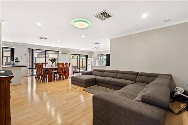 A beautiful spacious open plan home only moments away from Cockburn Central and the stunning coastline of Coogee Beach. With lots of living surrounding the large central kitchen, your growing family will have plenty of areas whether it be inside in the spacious family or lounge, or outside to easy care gardens, large alfresco for all year round outdoor entertaining.