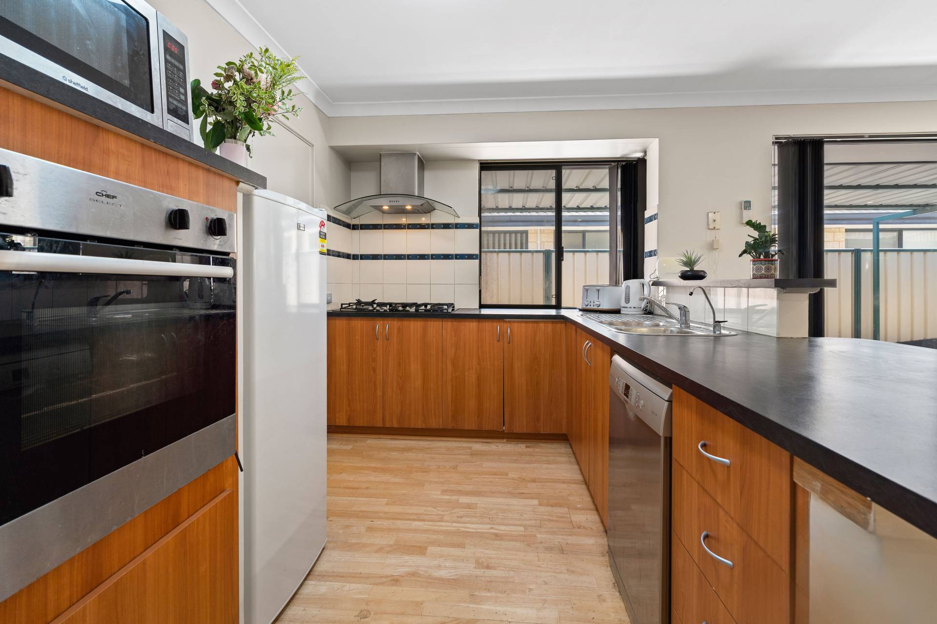 - Kitchen with gas cooking shoppers entrance plenty of bench space, dishwasher, pantry..